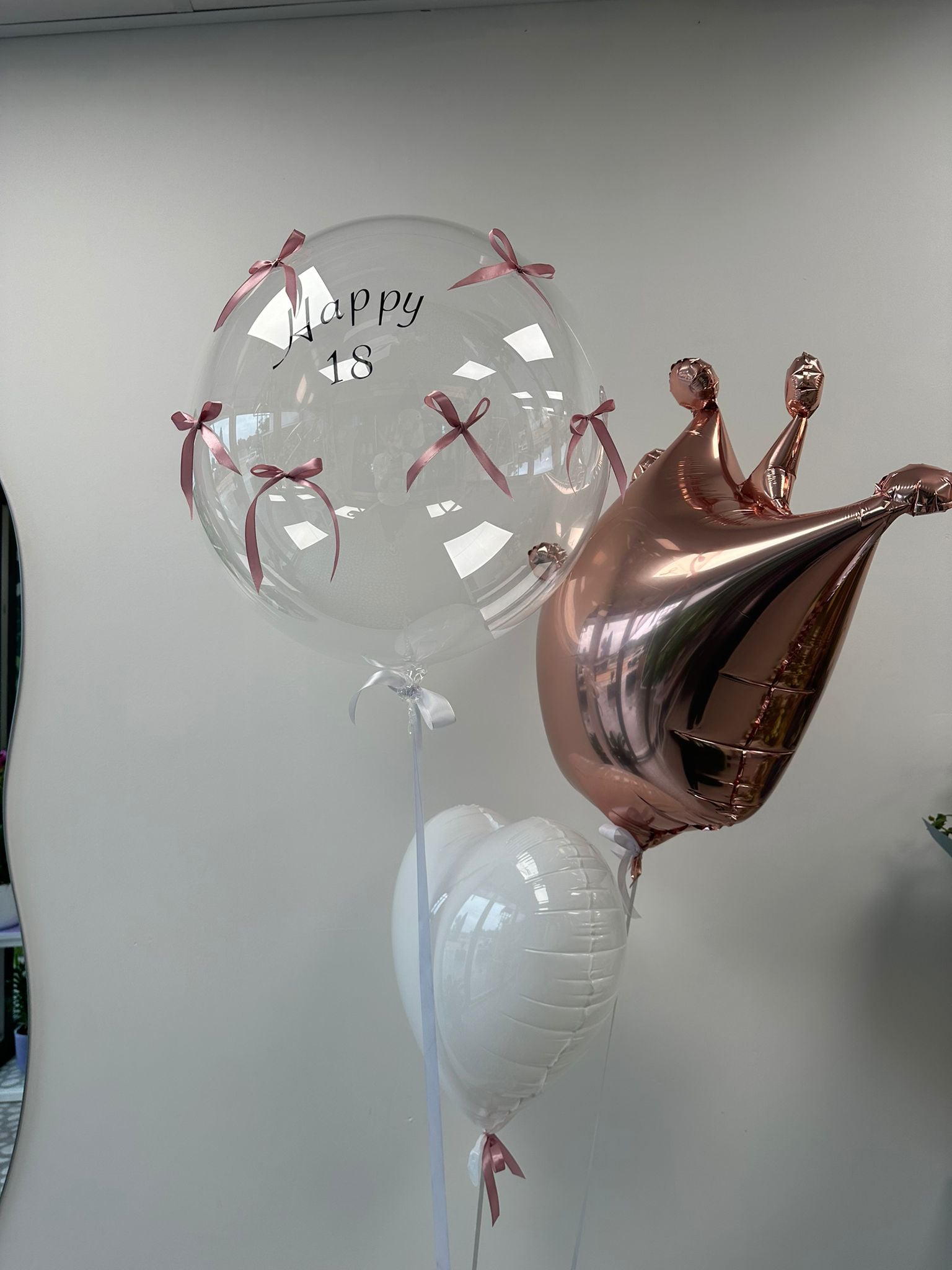בלון שקוף עם כיתוב, בלון כתר רוז, בלון לב לבן
