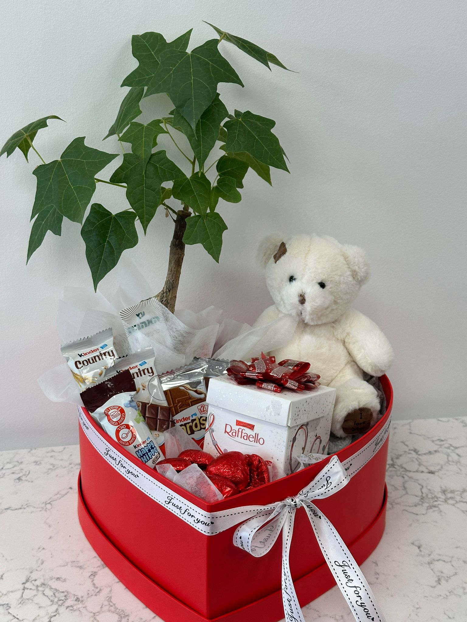 מארז שכולל עץ אהבה קטן, דובי קטן, קופסאת רפאלו בשילוב שקולדים נוספים