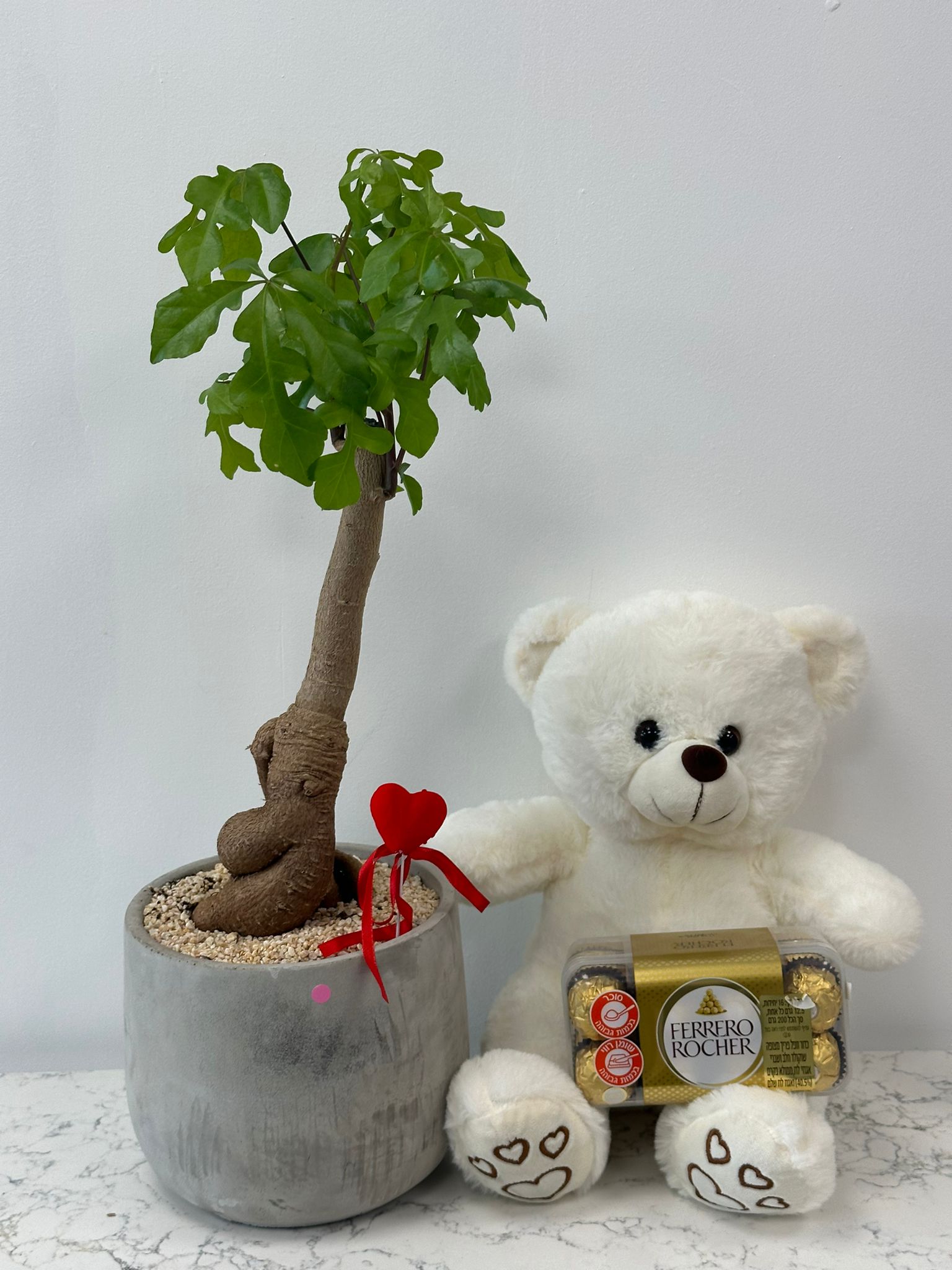 מארז שכולל עץ אהבה גדול , דובי לבן ומארז פררו הורשה